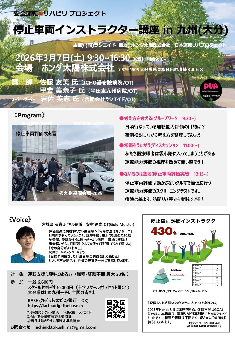 BASEでの決済が完了されましたら、Mailにて受講確認証、領収証(インボイス番号)、四国運転リハプロジェクトのガイドブックをお送りします。PCで受診できるアドレスをご記入いただけますと助かります。