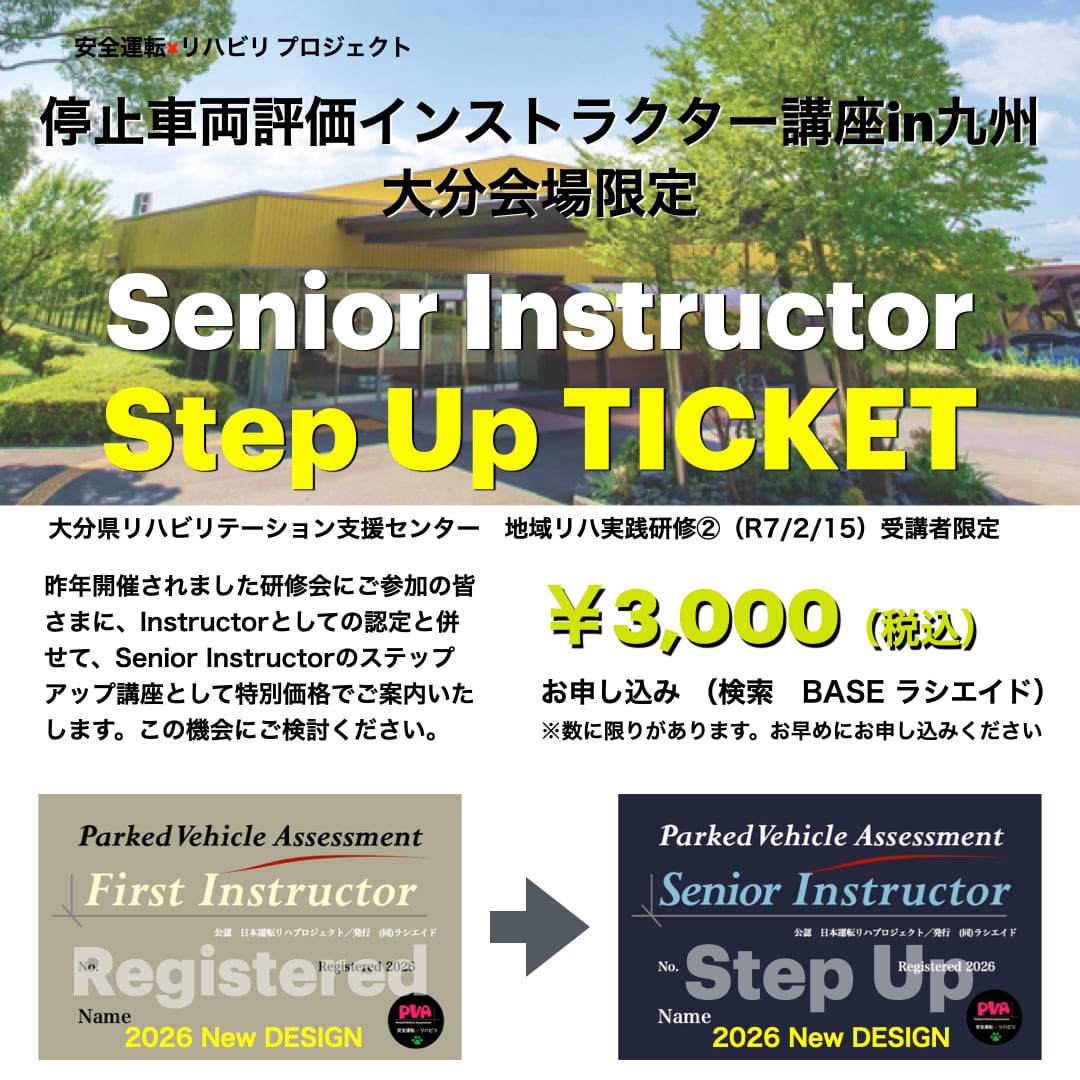 令和7年2月15日にJCHO湯布院病院で開催されました大分県リハビリテーション支援センター 地域リハ実践研修②「停止車両による自動車運転技能評価」を受講されました皆さま限定のステップアップチケットとなります。